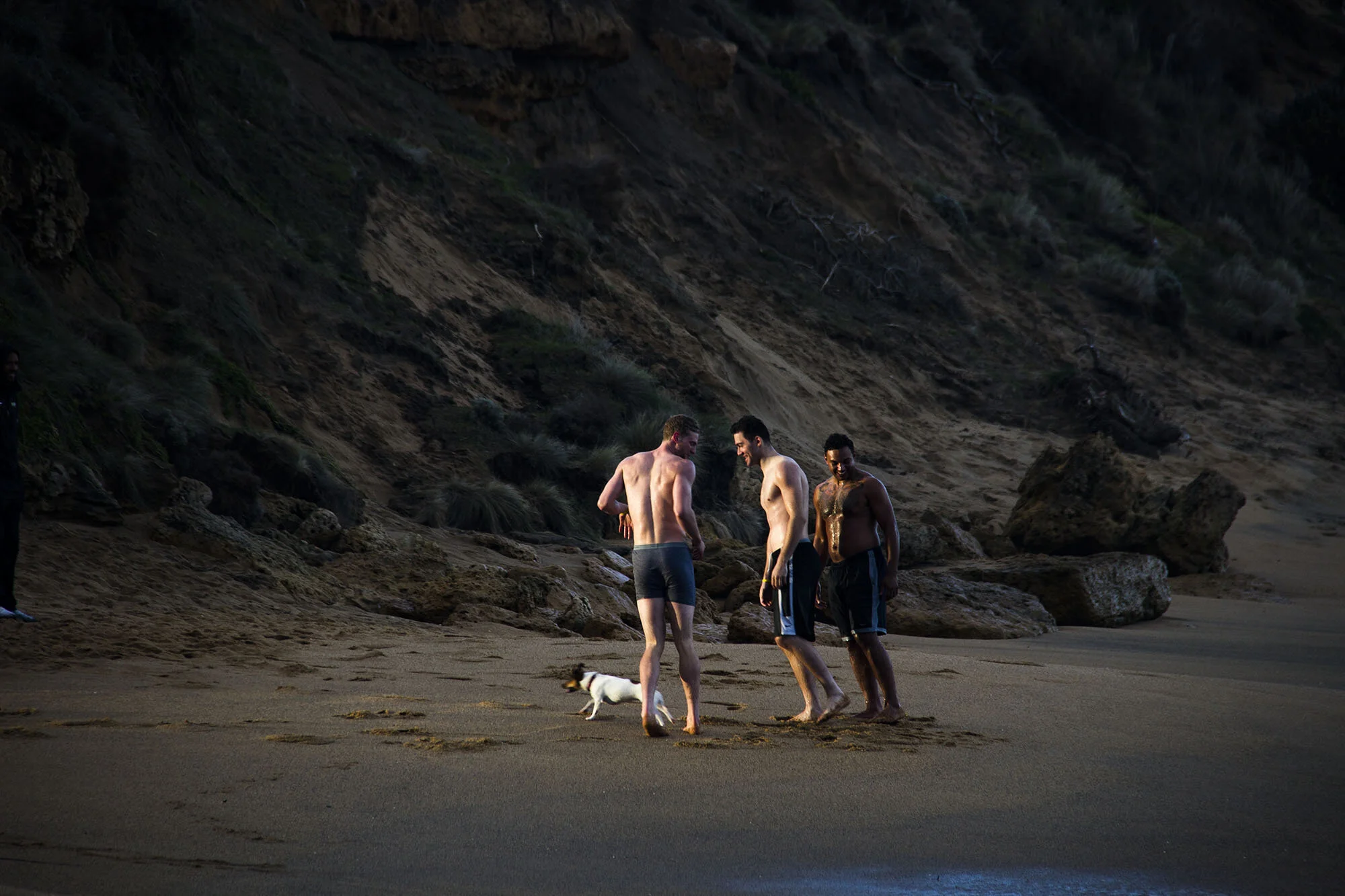 These three were the gamer part of a school team that were expiring the coast the other day. I turned and took this snap as they just emerged from a dip in the bitter cold of Bass Strait. Later that evening I looked at what I’d captured and realized this was a moment these young men will remember years from now when their now brilliant light is dimming. The Jack Russell just had to join them, and nearly drowned.